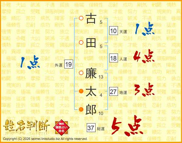 古田廉太郎さんの総運は37画の5点!