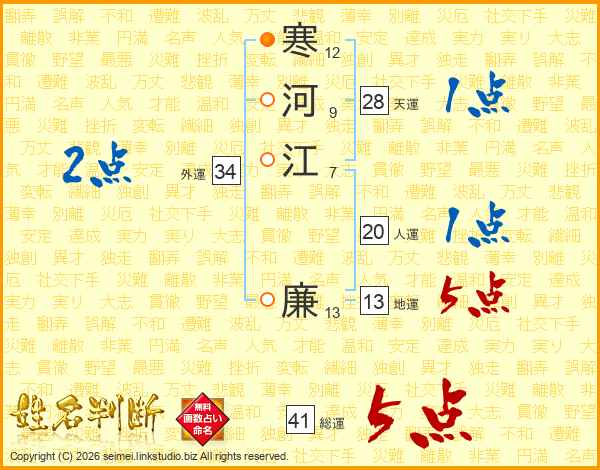 寒河江廉さんの総運は41画の5点!