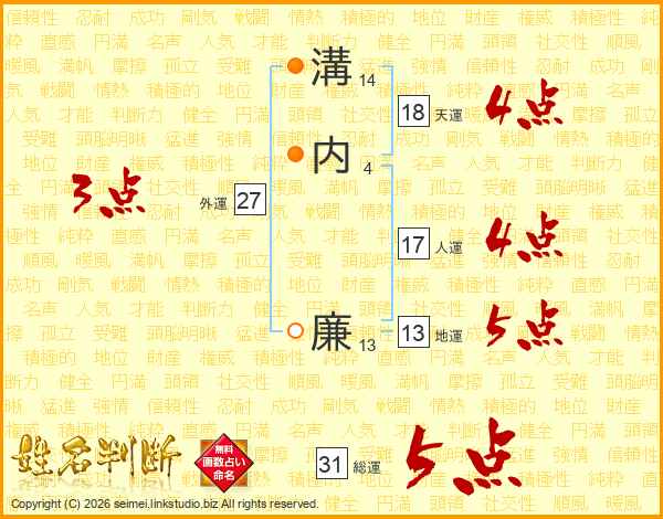 溝内廉さんの総運は31画の5点!