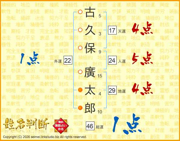 古久保廣太郎さんの総運は46画の1点!