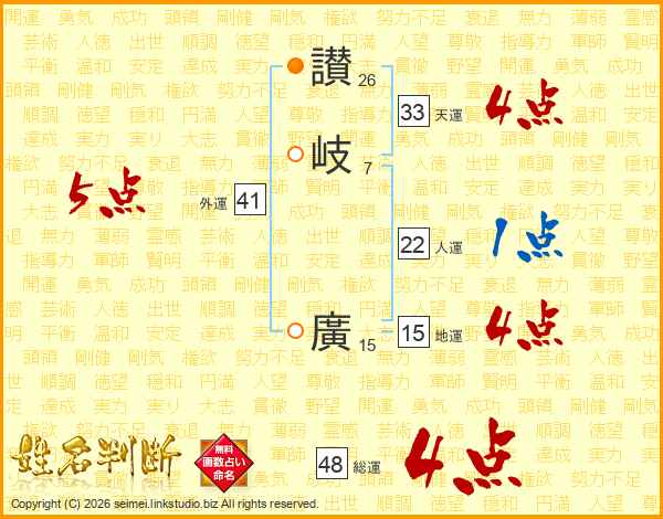 讃岐廣さんの総運は48画の4点!