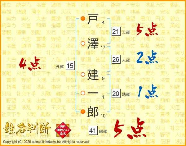 戸(4画)澤(17画) 建(9画)一(1画)郎(10画)