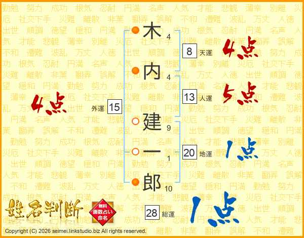 木内建一郎さんの総運は28画の1点!