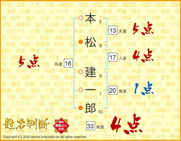 本松建一郎さんの天運は13画の5点!