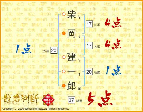 柴(9画)岡(8画) 建(9画)一(1画)郎(10画)