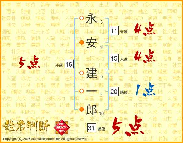 永安建一郎さんの総運は31画の5点!