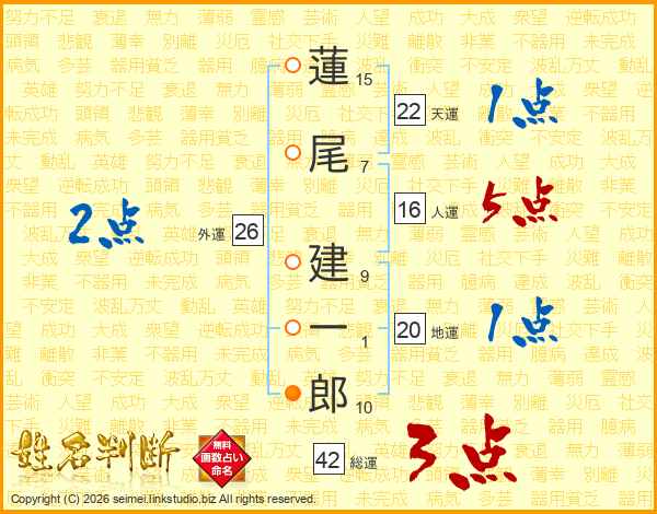 蓮尾建一郎さんの天運は22画の1点!