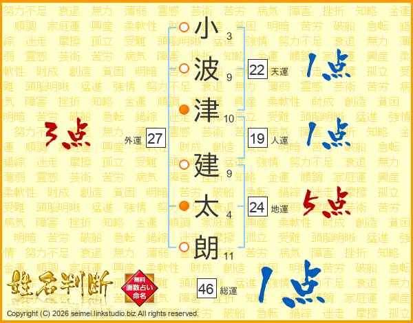 小波津建太朗さんの天運は22画の1点!