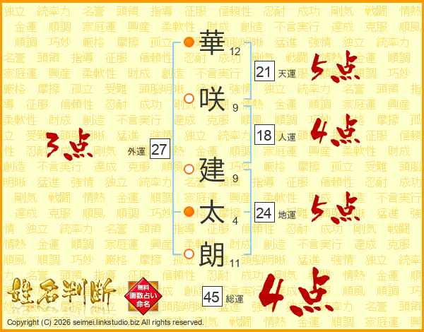 華咲建太朗さんの総運は45画の4点!