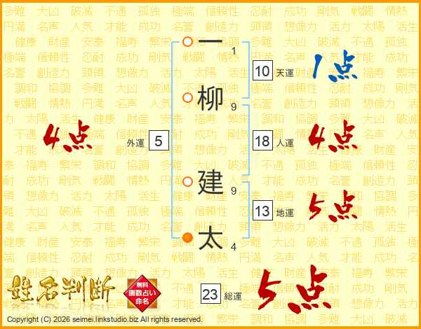 一柳建太さんの総運は23画の5点!