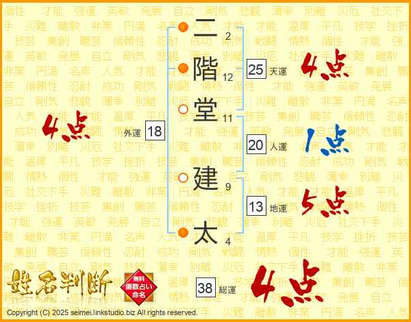 二階堂建太さんの総運は38画の4点!