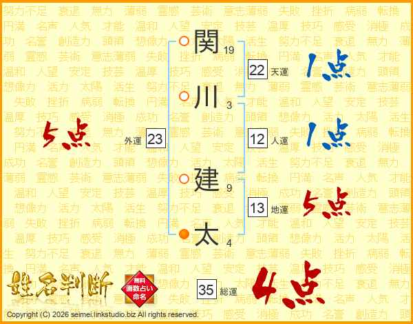 関川建太さんの総運は35画の4点!