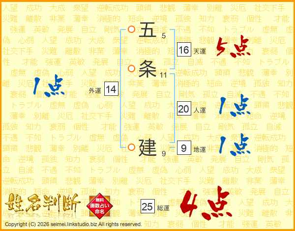 五条建さんの総運は25画の4点!