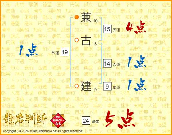 兼古建さんの総運は24画の5点!