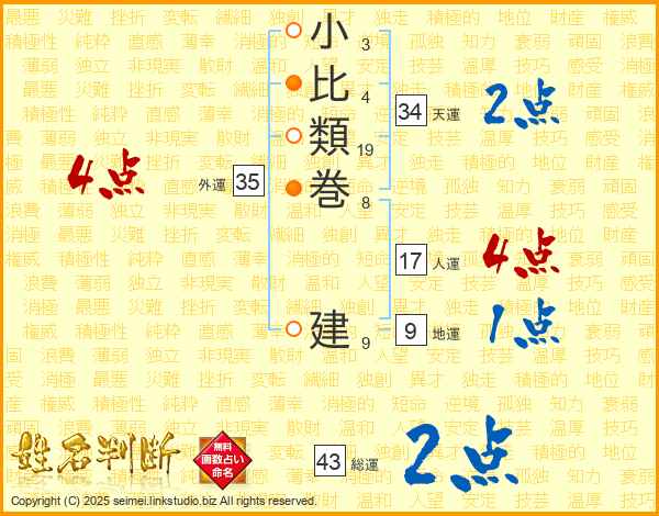 小比類巻建さんの総運は43画の2点!