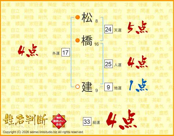 松(8画)橋(16画) 建(9画)