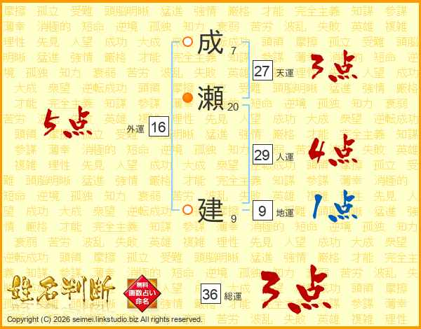 成瀬建さんの総運は36画の3点