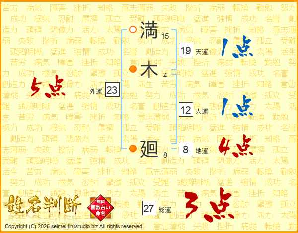満木廻さんの総運は27画の3点!