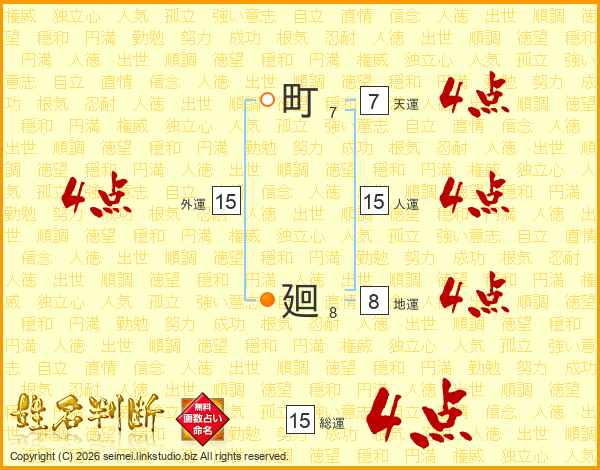 町廻さんの人運は15画の4点!