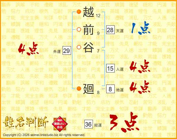 越前谷廻さんの人運は15画の4点!