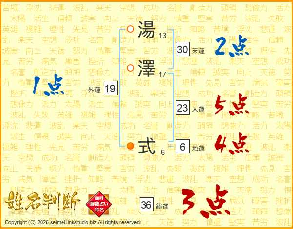 湯澤式さんの総運は36画の3点!