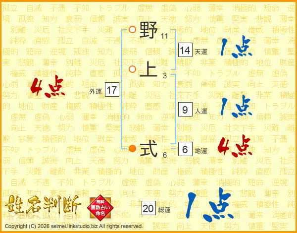 野上式さんの天運は14画の1点!