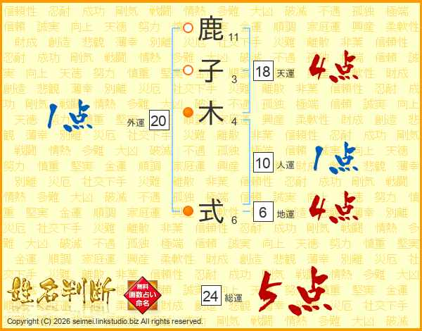 鹿子木式さんの天運は18画の4点!