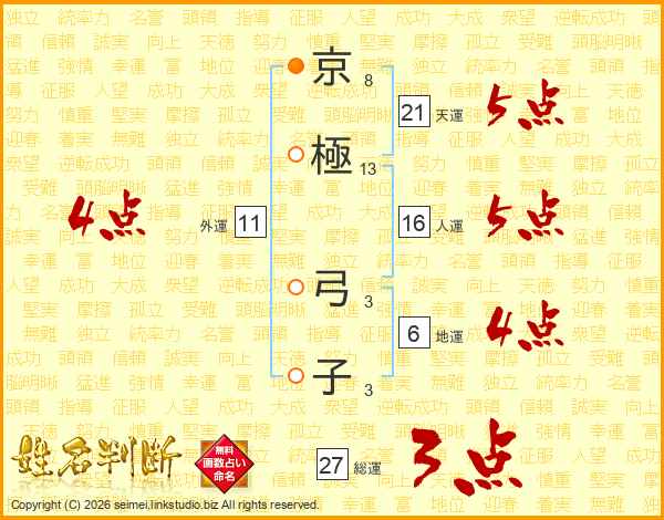 京(8画)極(13画) 弓(3画)子(3画)