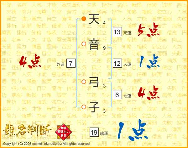 天音弓子さんの外運は7画の4点!