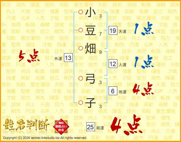 小豆畑弓子さんの総運は25画の4点!