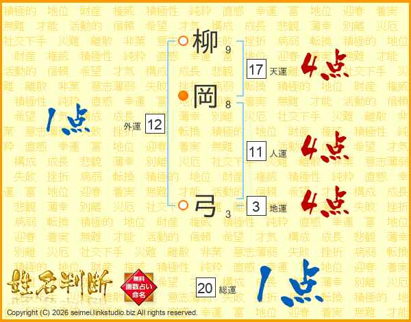柳岡弓さんの天運は17画の4点!