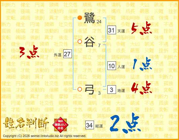 鷺谷弓さんの総運は34画の2点!