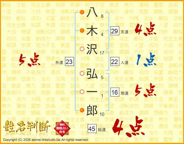 八(8画)木(4画)沢(17画) 弘(5画)一(1画)郎(10画)