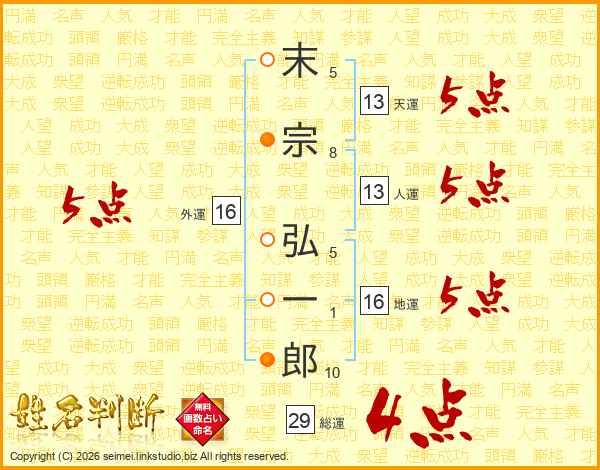 末宗弘一郎さんの外運は16画の5点!