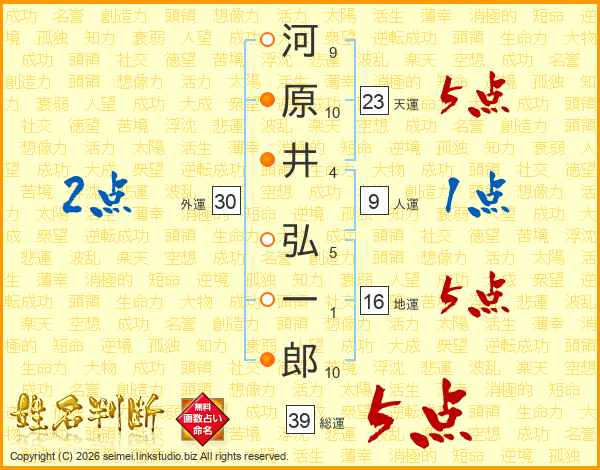 河原井弘一郎さんの総運は39画の5点!