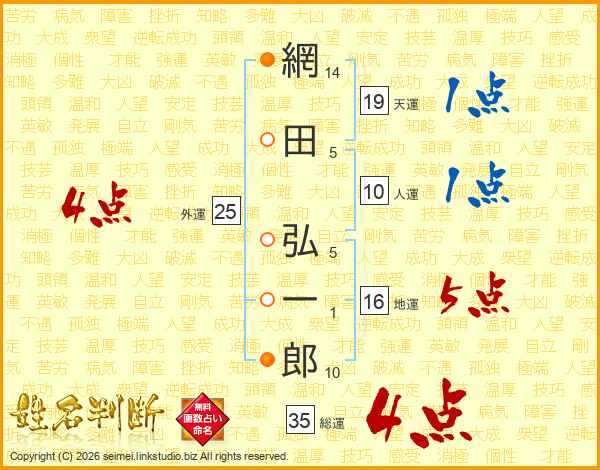 網(14画)田(5画) 弘(5画)一(1画)郎(10画)