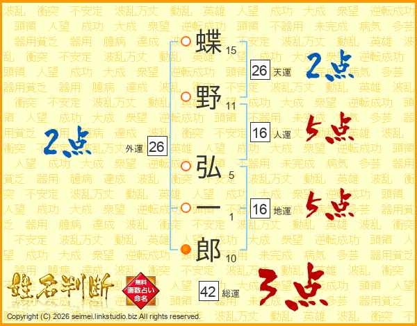 蝶野弘一郎さんの総運は42画の3点!