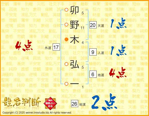 卯(5画)野(11画)木(4画) 弘(5画)一(1画)