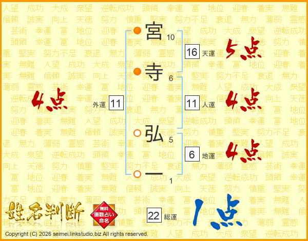 宮(10画)寺(6画) 弘(5画)一(1画)