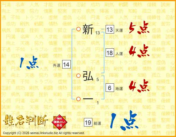 新弘一さんの総運は19画の1点!