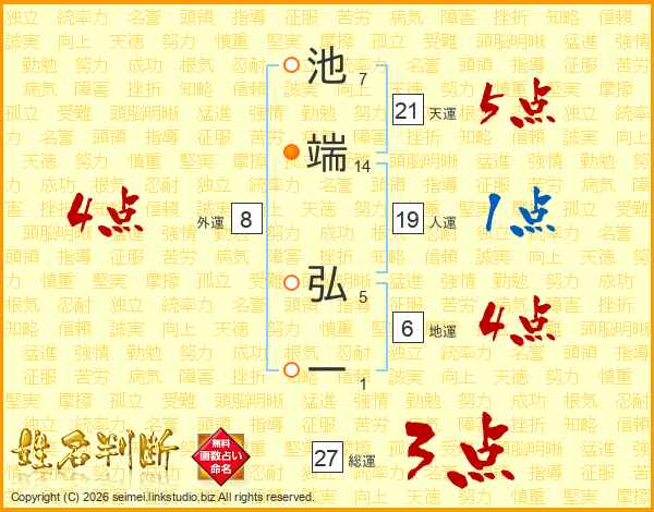 池端弘一さんの総運は27画の3点!