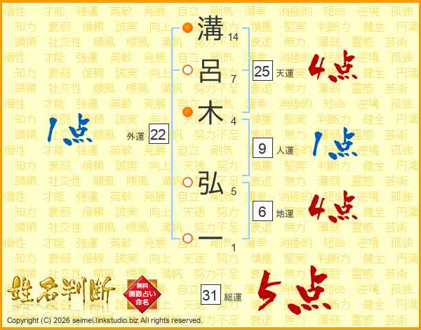 溝(14画)呂(7画)木(4画) 弘(5画)一(1画)
