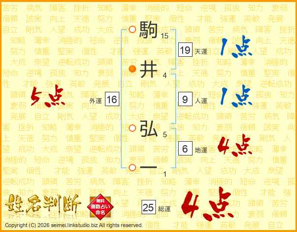 駒(15画)井(4画) 弘(5画)一(1画)