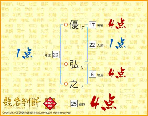 優弘之さんの総運は25画の4点!
