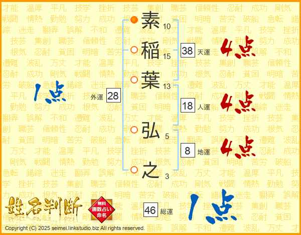 素稲葉弘之さんの総運は46画の1点!