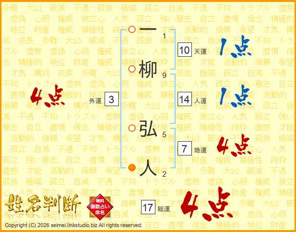 一柳弘人さんの総運は17画の4点!