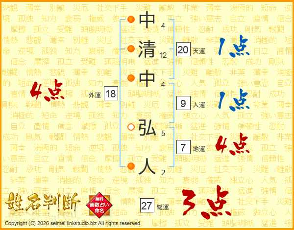 中清中弘人さんの総運は27画の3点!