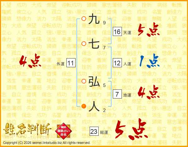 九七弘人さんの総運は23画の5点!