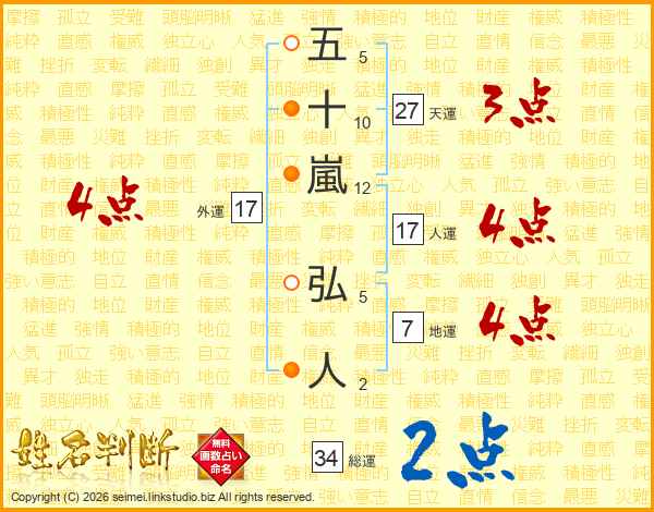 五十嵐弘人さんの総運は34画の2点!