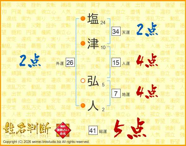 塩(24画)津(10画) 弘(5画)人(2画)